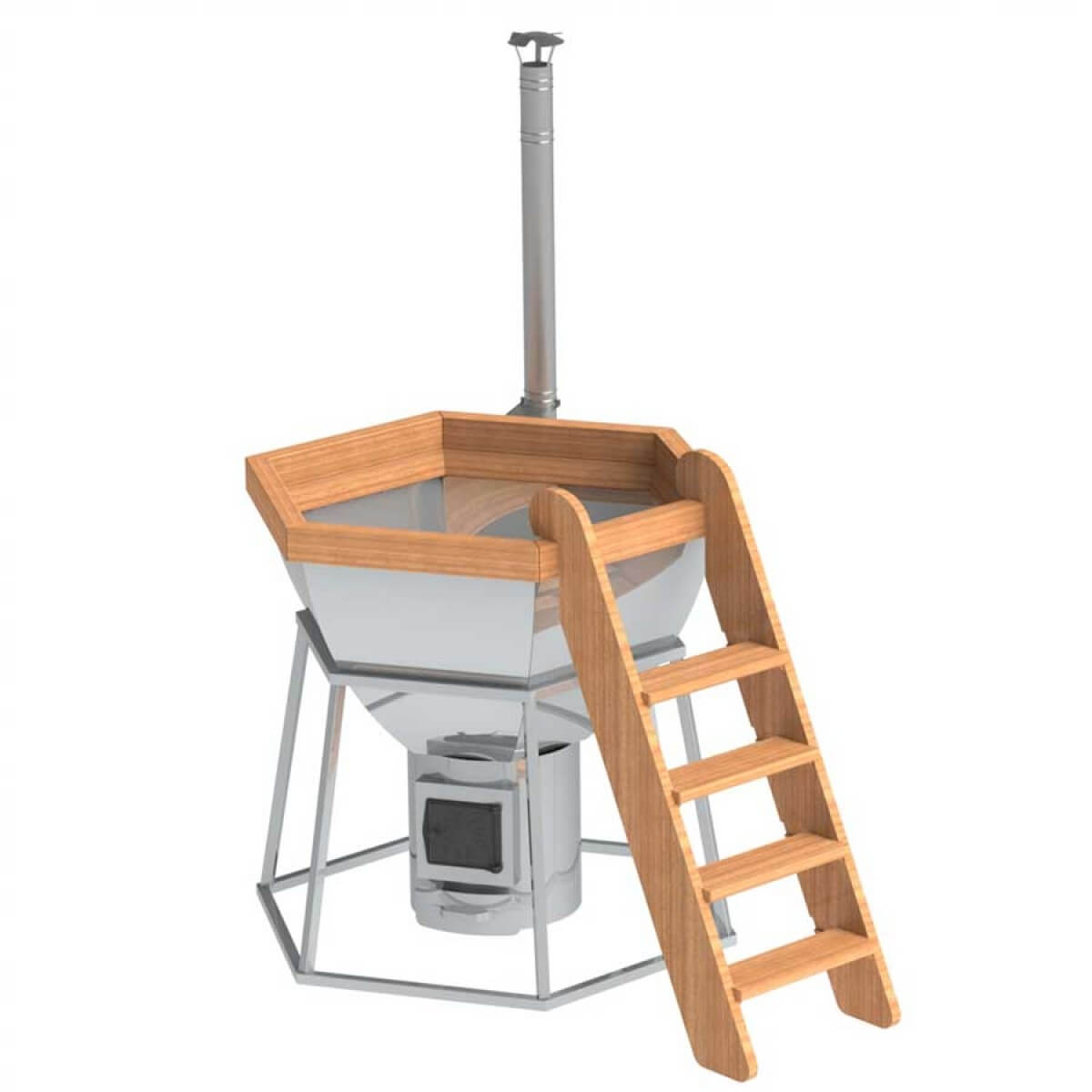 Банный чан Сибирский завод 6 граней на подставке с печью (марка стали AISI 430 и толщина стенки 2 мм)