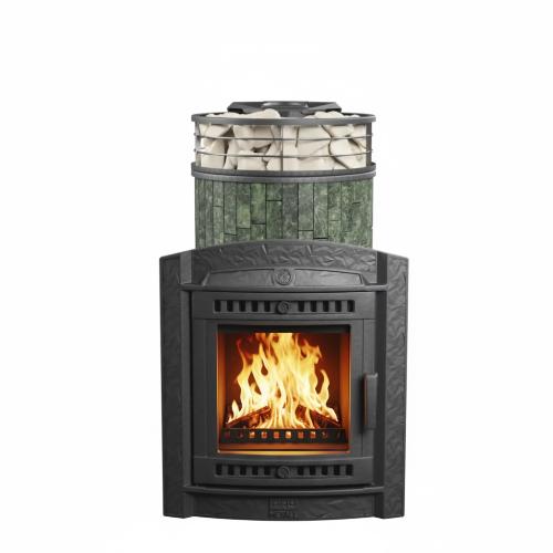 • Закрытая каменка, расположенная внутри топки позволяет провести нагрев камней до очень высоких температур. Камни находятся внутри корпуса каменки и нагреваются непосредственно пламенем равномерно со всех сторон.
