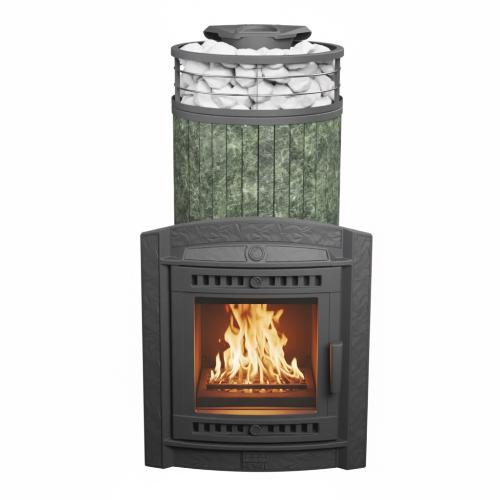 • Закрытая каменка, расположенная внутри топки позволяет провести нагрев камней до очень высоких температур. Камни находятся внутри корпуса каменки и нагреваются непосредственно пламенем равномерно со всех сторон.