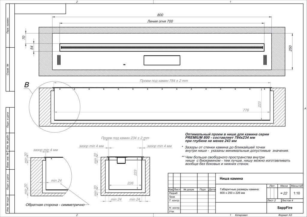 • Компактные размеры: ширина камина 250 мм