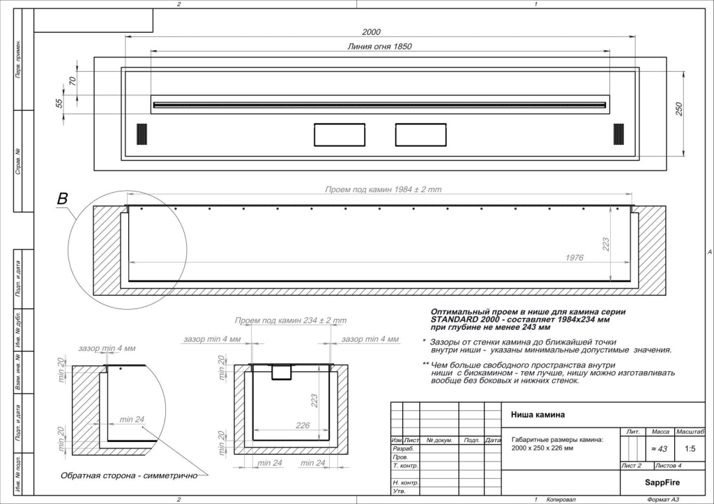 Инструкции, чертежи, документы - Автоматический биокамин SappFire Standard (топливный блок 2000)