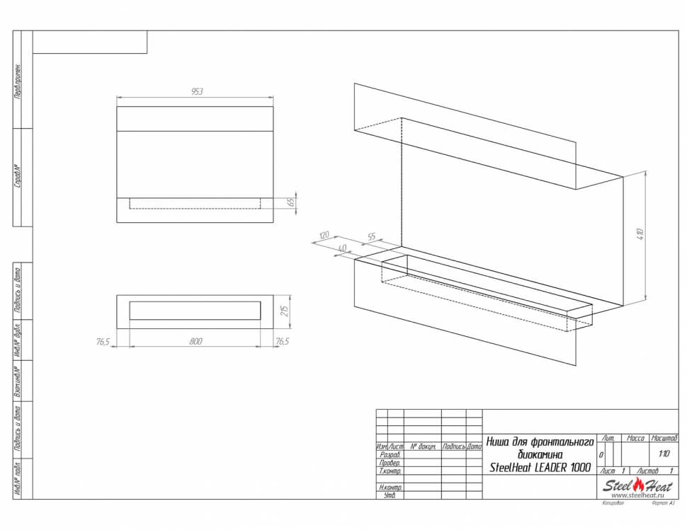 Инструкции, чертежи, документы - Биокамин фронтальный SteelHeat Leader 1000