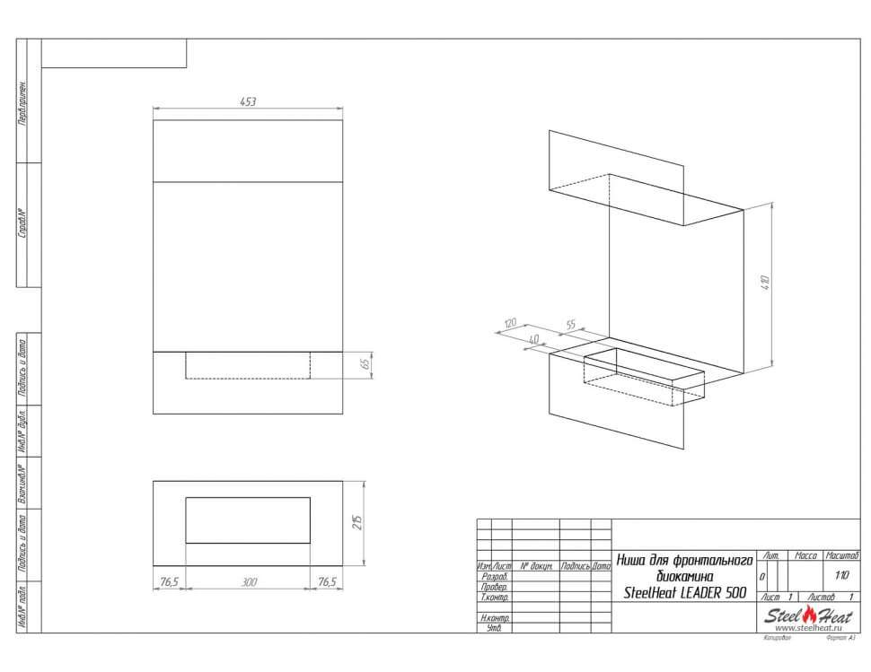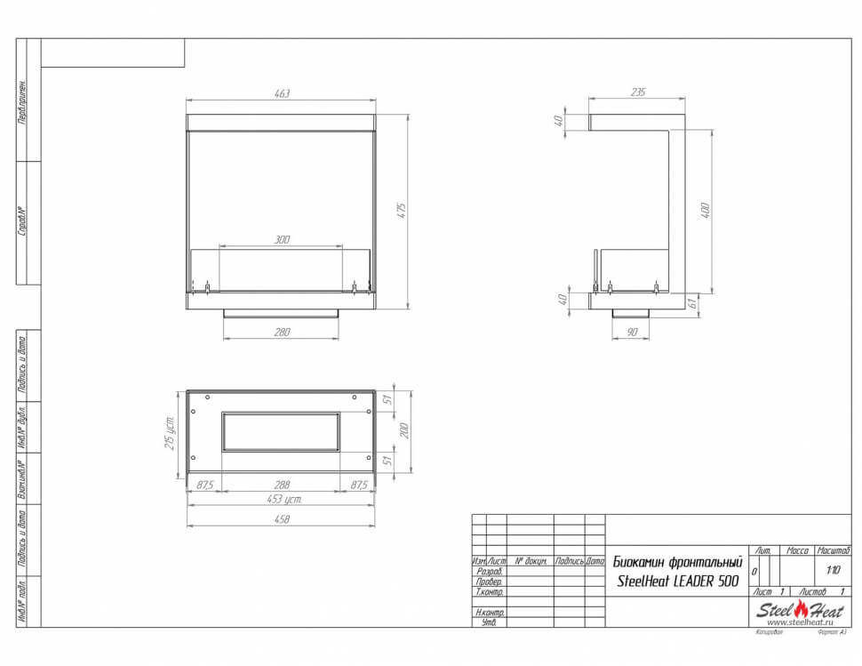 Инструкции, чертежи, документы - Биокамин фронтальный SteelHeat Leader 500