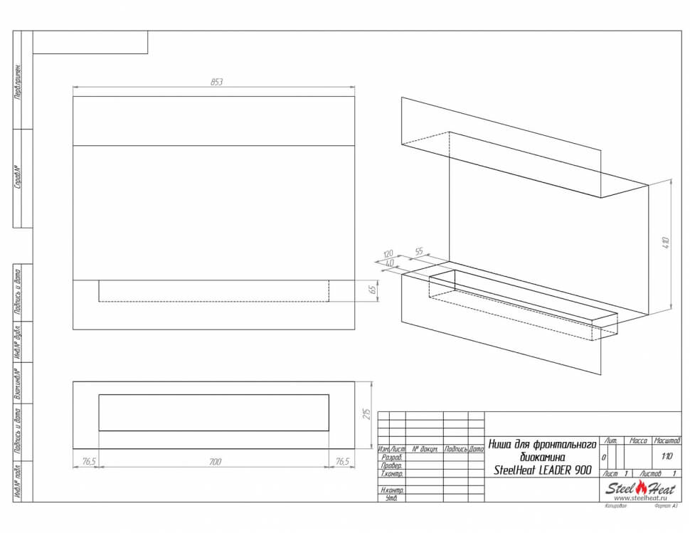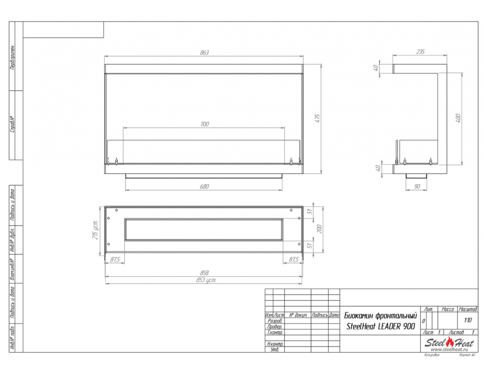Инструкции, чертежи, документы - Биокамин фронтальный SteelHeat Leader 900