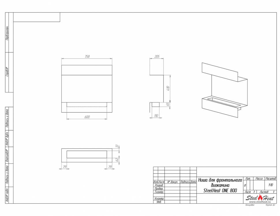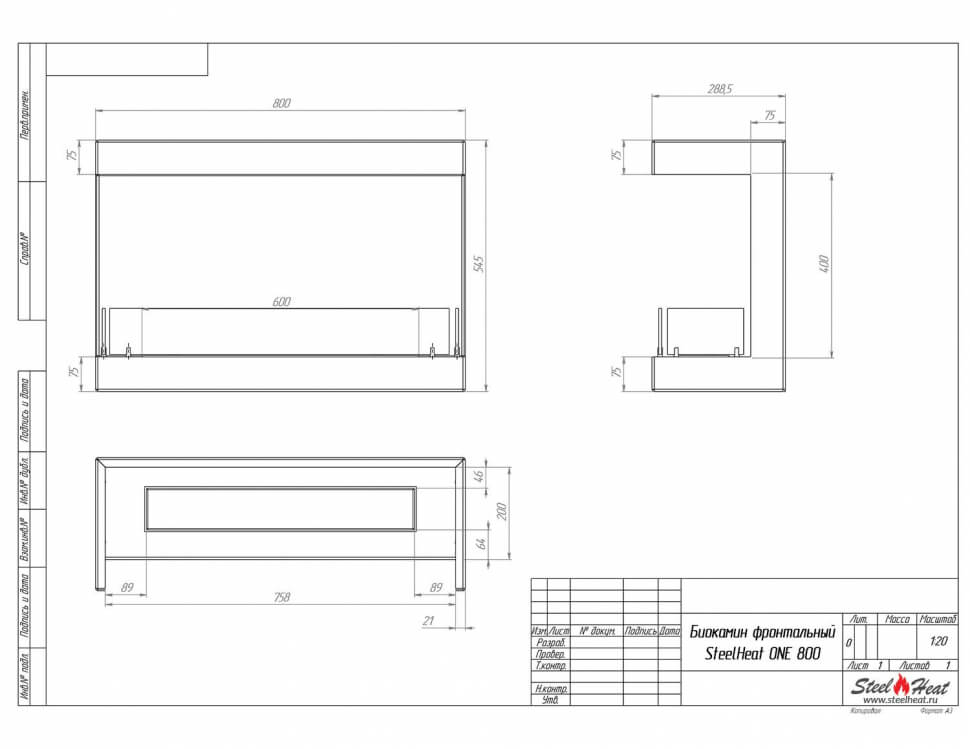 Биокамин фронтальный SteelHeat One 800 (стандарт)