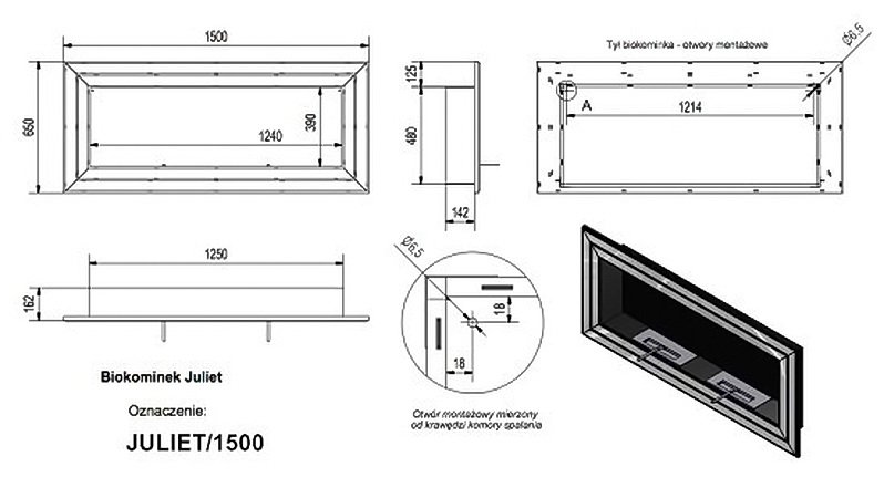 Инструкции, чертежи, документы - Биокамин Kratki JULIET/1500 TUV