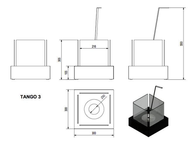 Инструкции, чертежи, документы - Биокамин Kratki TANGO 3, TUV черный, гранит