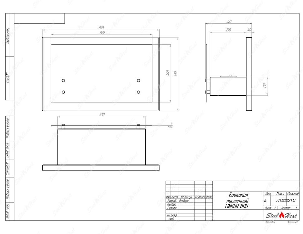 Инструкции, чертежи, документы - Биокамин навесной SteelHeat Linkor 800
