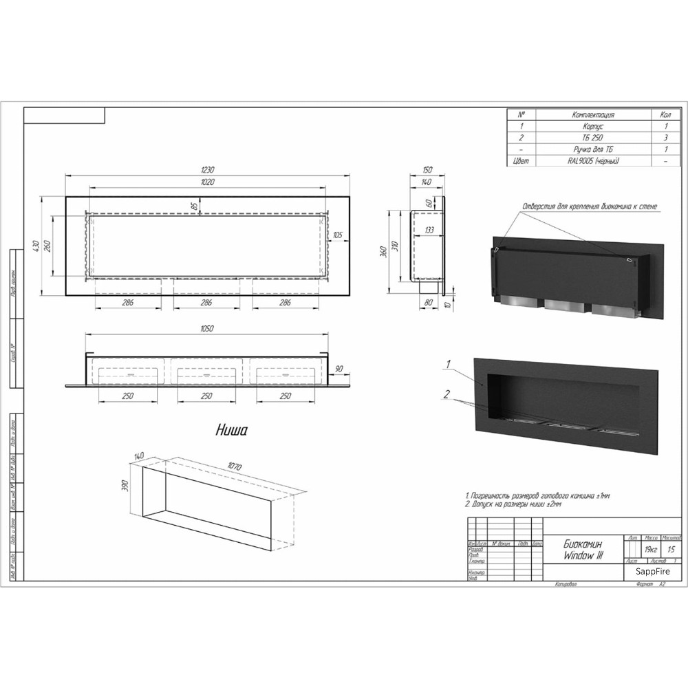 Инструкции, чертежи, документы - Биокамин SappFire Delta 1200