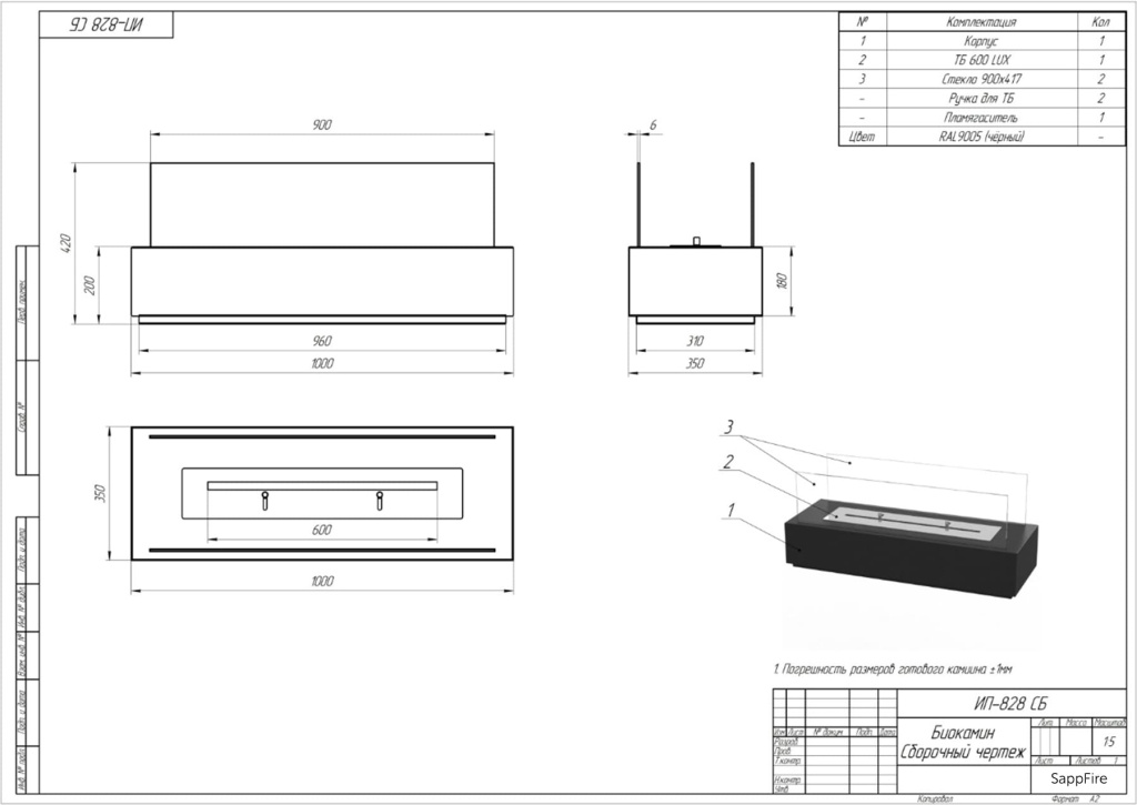 Инструкции, чертежи, документы - Биокамин SappFire Prometey черный