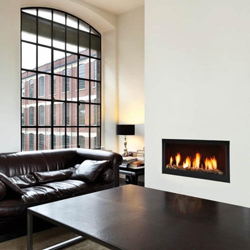 Идеальный вариант для малогабаритной квартиры - топка закреплена в нише стены и почти не отнимает пространства.