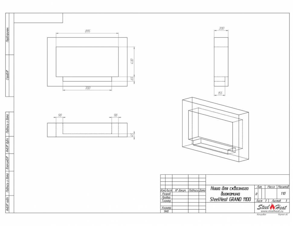 Биокамин сквозной SteelHeat Grand 1100 (стандарт)
