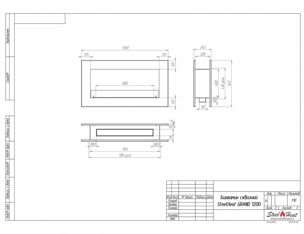 Биокамин сквозной SteelHeat Grand 1200 (стандарт)