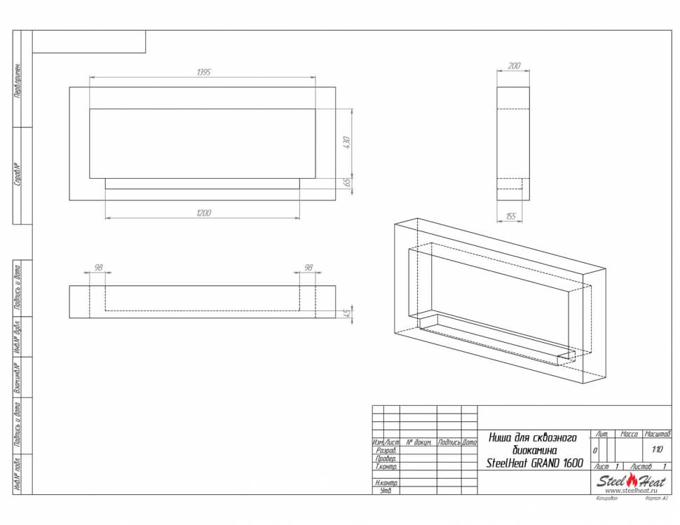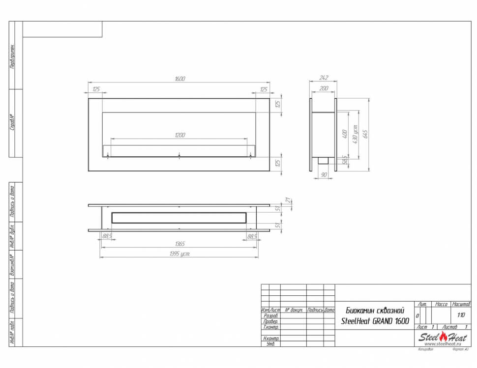 Биокамин сквозной SteelHeat Grand 1600 (стандарт)