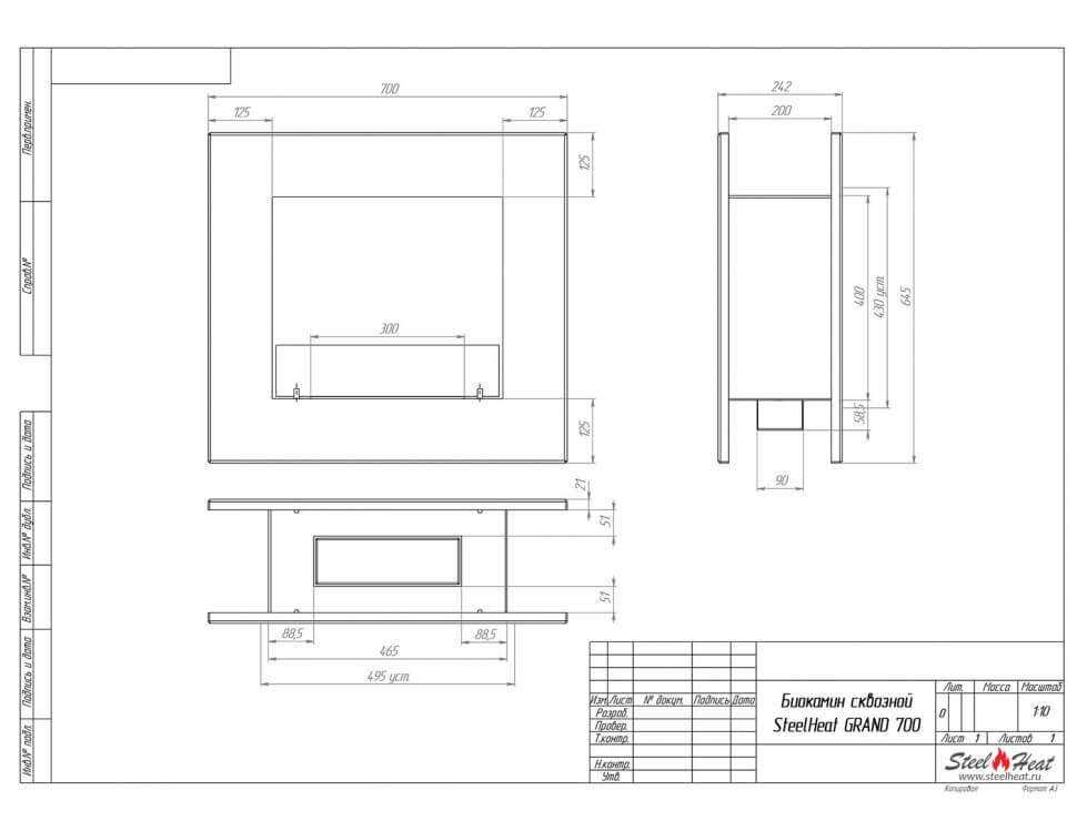Биокамин сквозной SteelHeat Grand 700 (стандарт)
