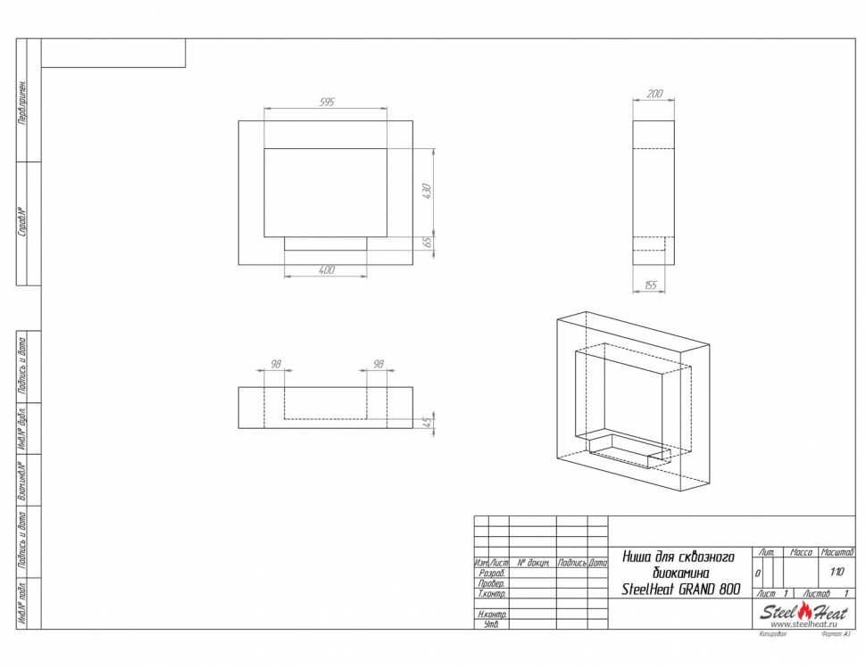 Биокамин сквозной SteelHeat Grand 800 (стандарт)