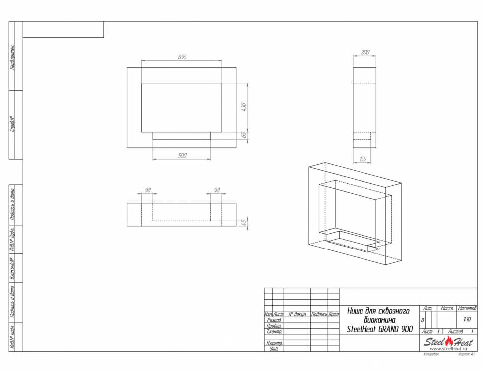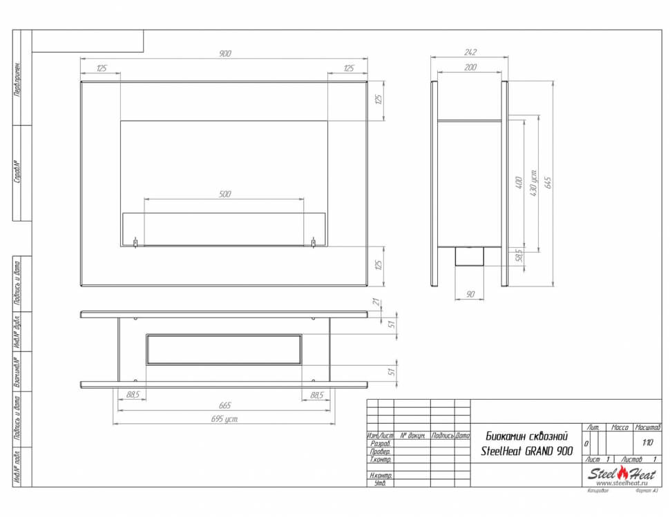 Биокамин сквозной SteelHeat Grand 900 (стандарт)
