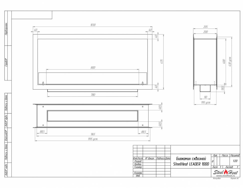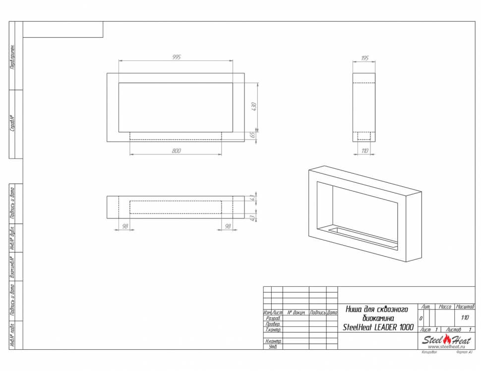 Инструкции, чертежи, документы - Биокамин сквозной SteelHeat Leader 1000