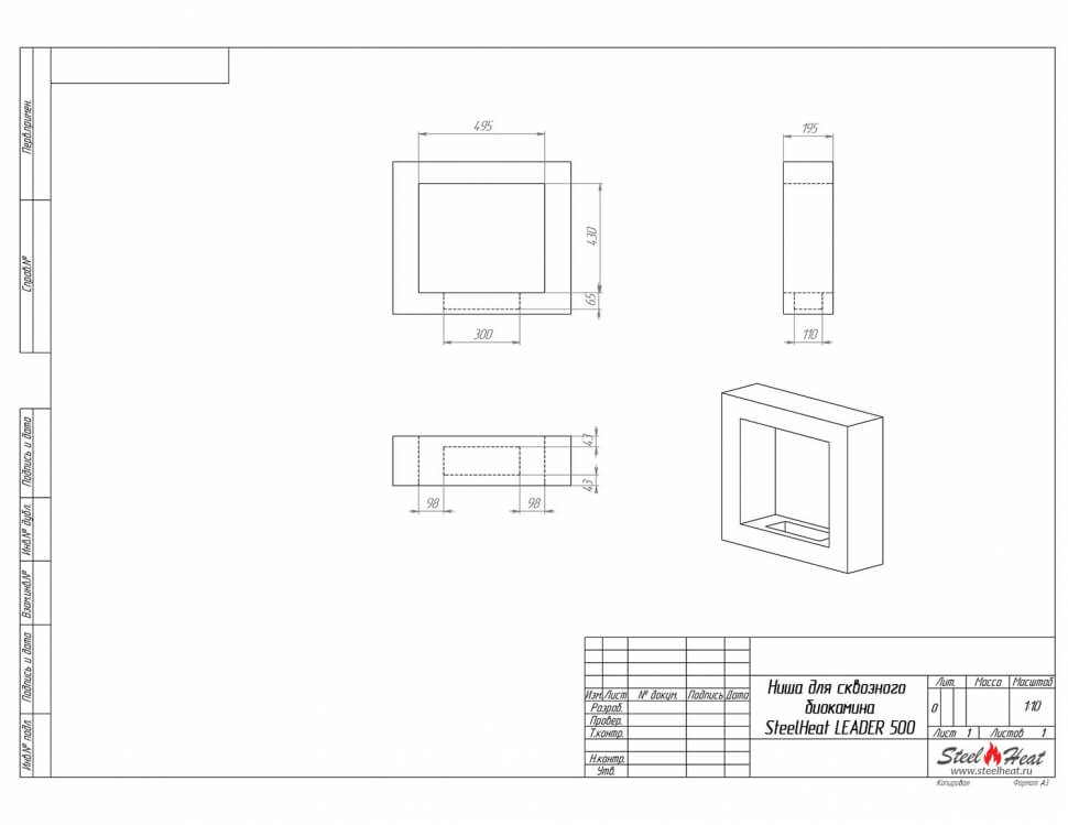 Инструкции, чертежи, документы - Биокамин сквозной SteelHeat Leader 500