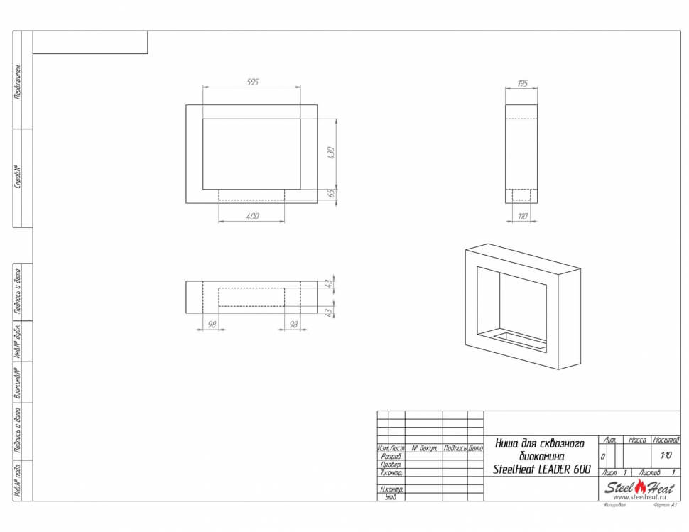 Инструкции, чертежи, документы - Биокамин сквозной SteelHeat Leader 600