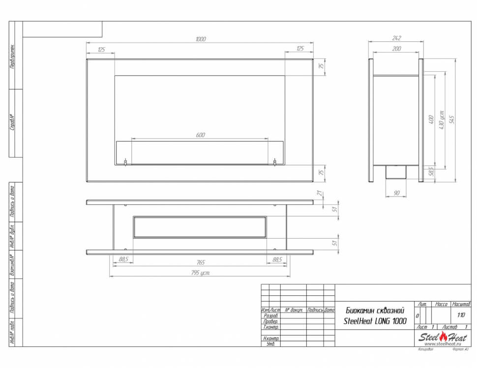 Биокамин сквозной SteelHeat Long 1000 (стандарт)