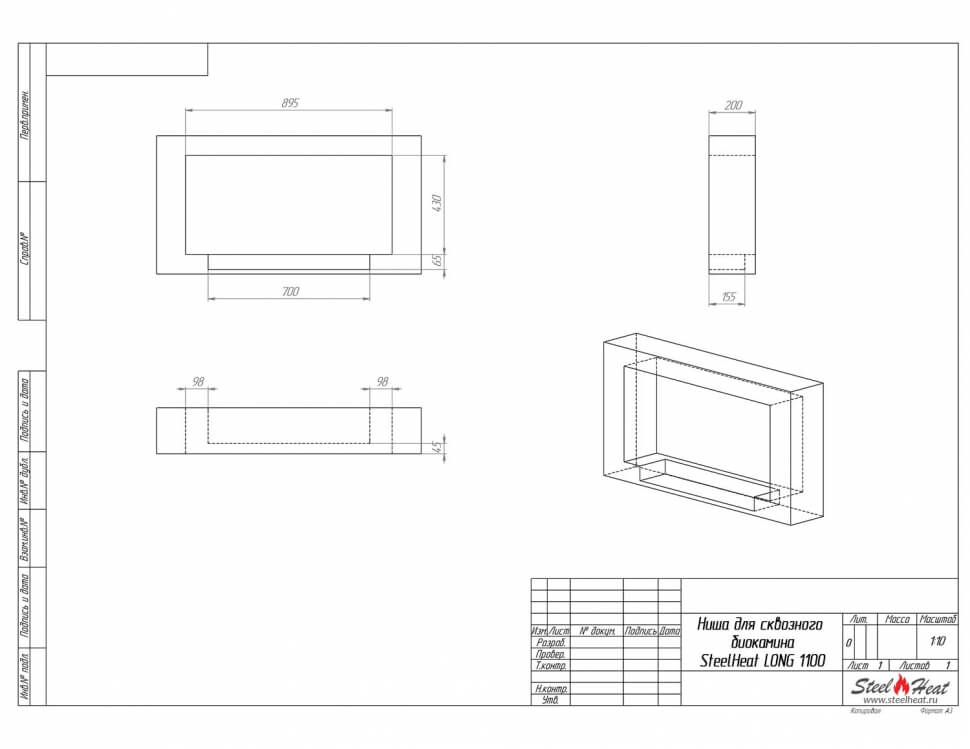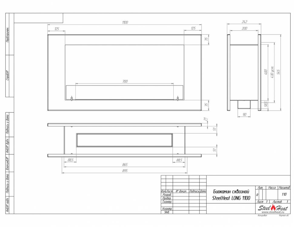 Биокамин сквозной SteelHeat Long 1100 (стандарт)