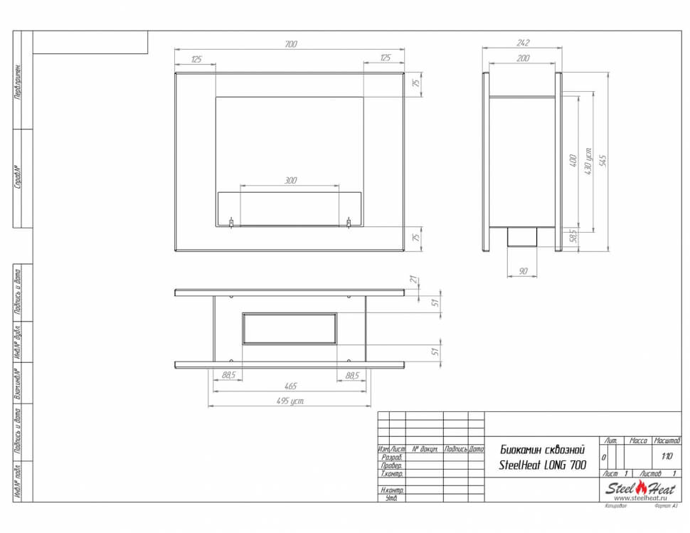 Биокамин сквозной SteelHeat Long 700 (стандарт)