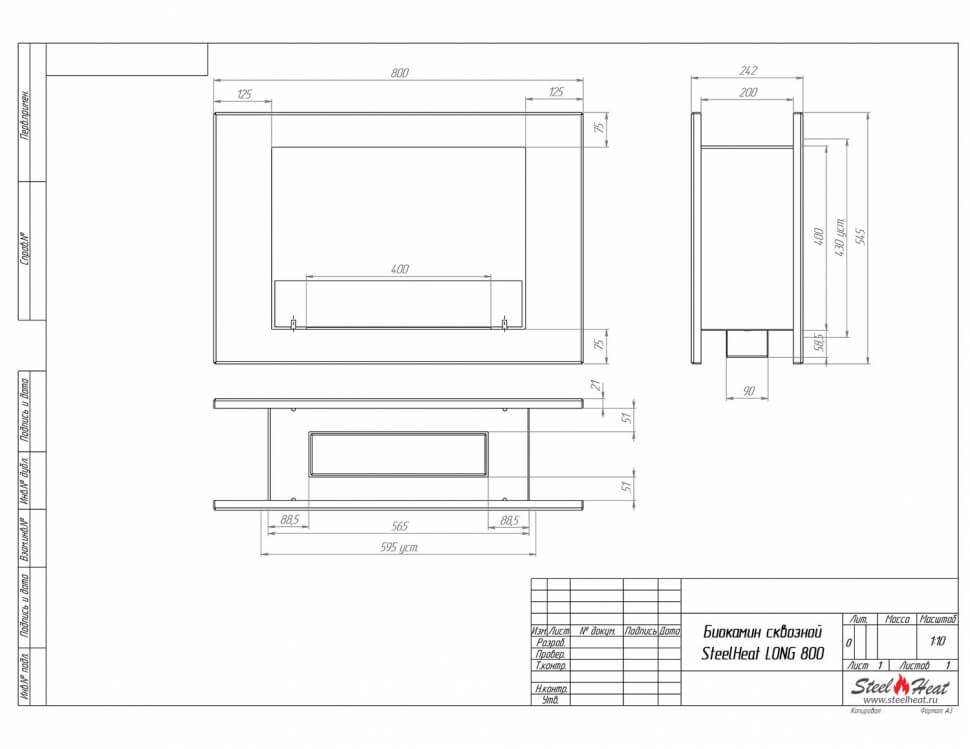 Биокамин сквозной SteelHeat Long 800 (стандарт)