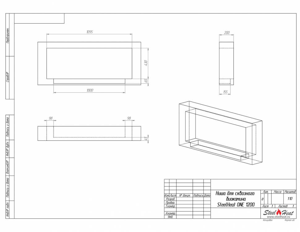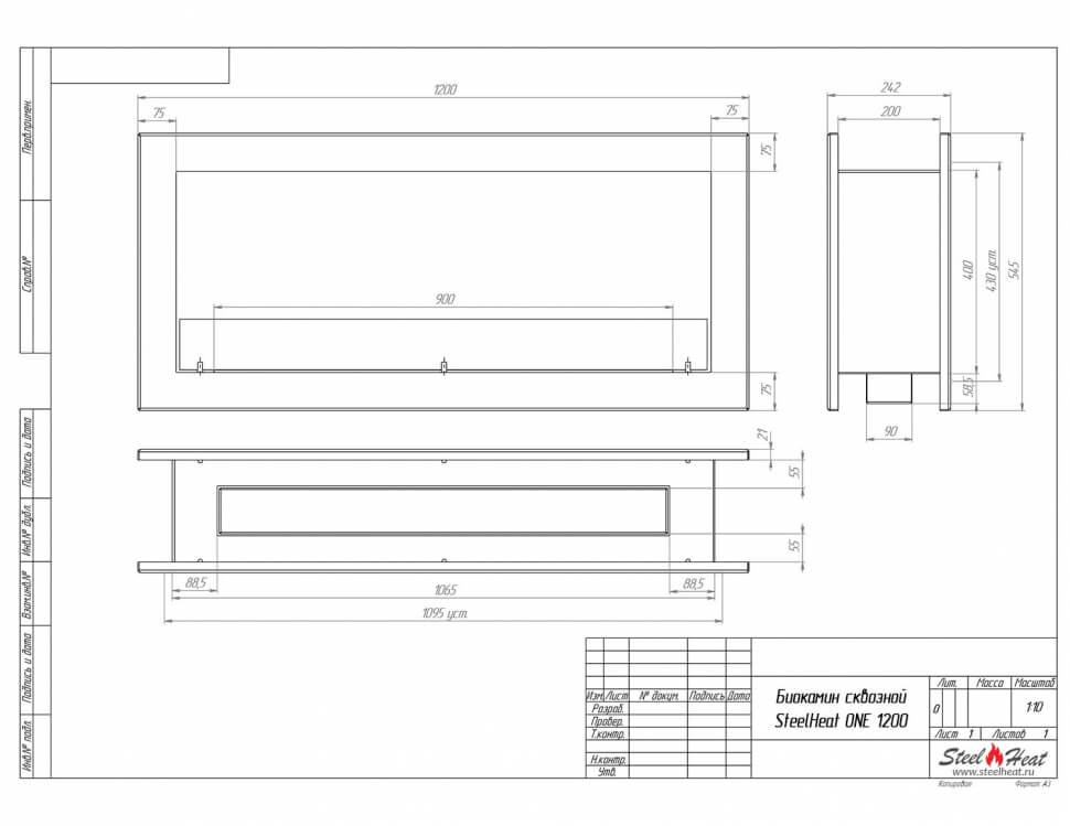 Биокамин сквозной SteelHeat One 1200 (стандарт)