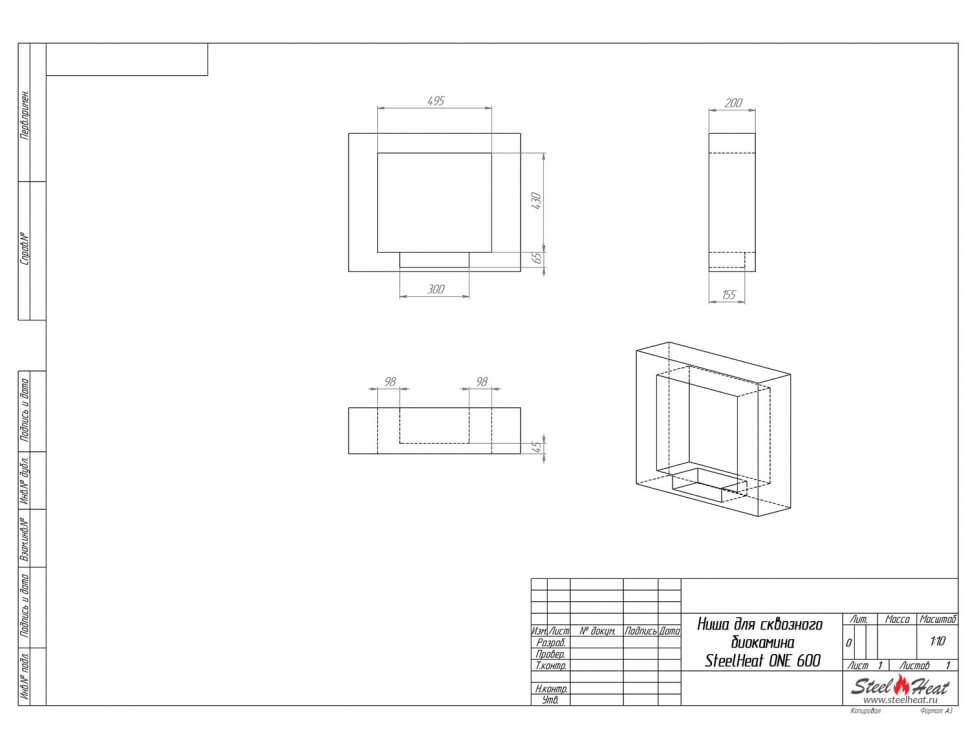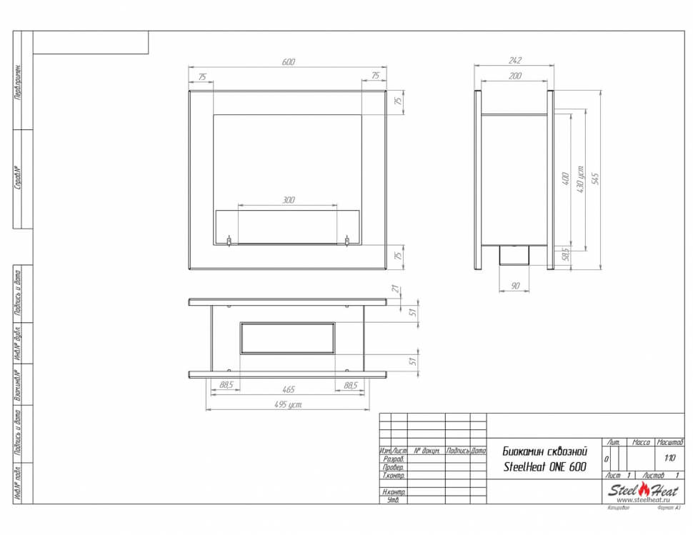 Биокамин сквозной SteelHeat One 600 (стандарт)
