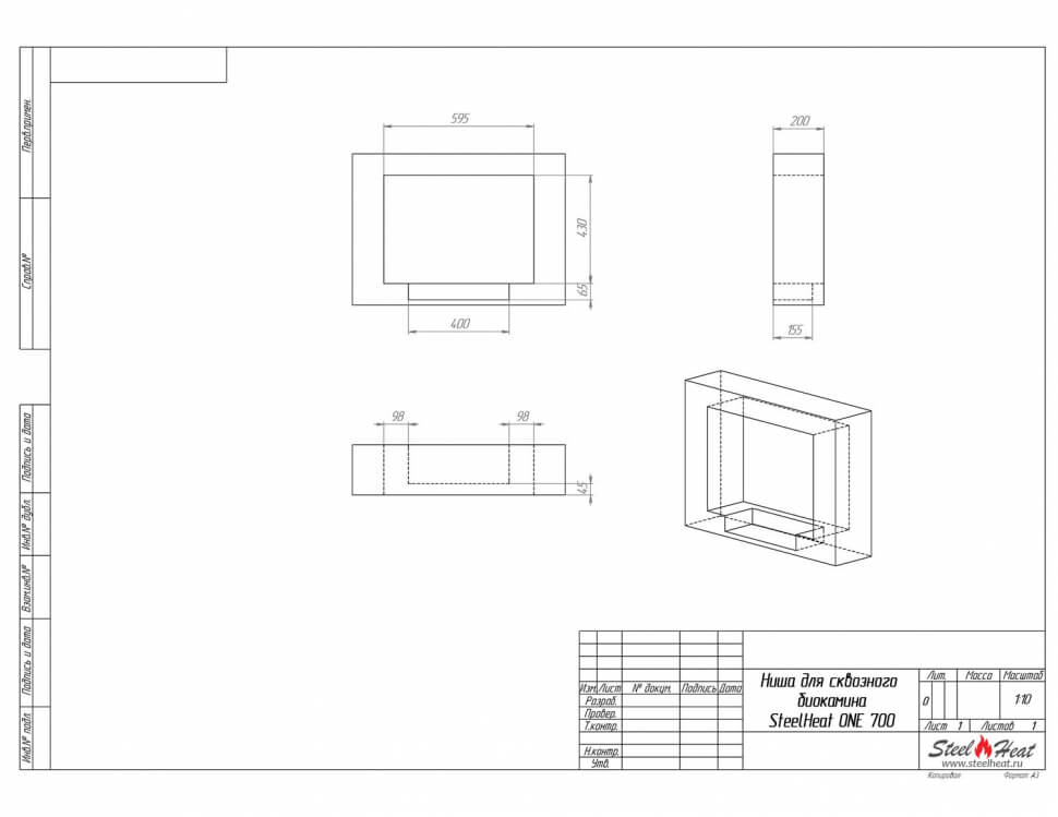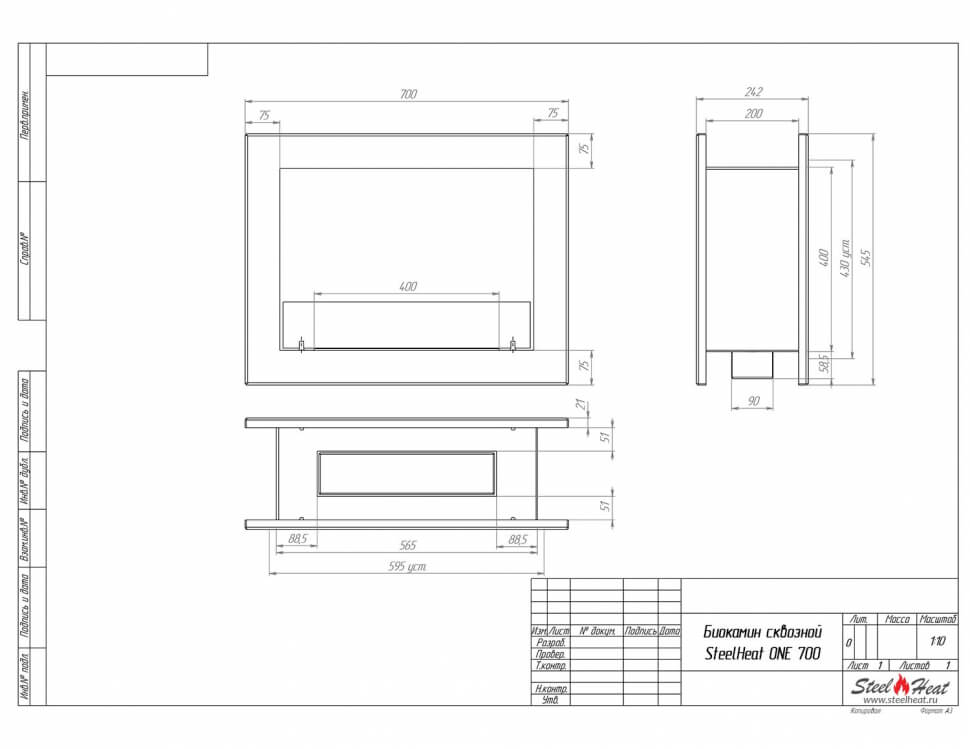 Биокамин сквозной SteelHeat One 700 (стандарт)