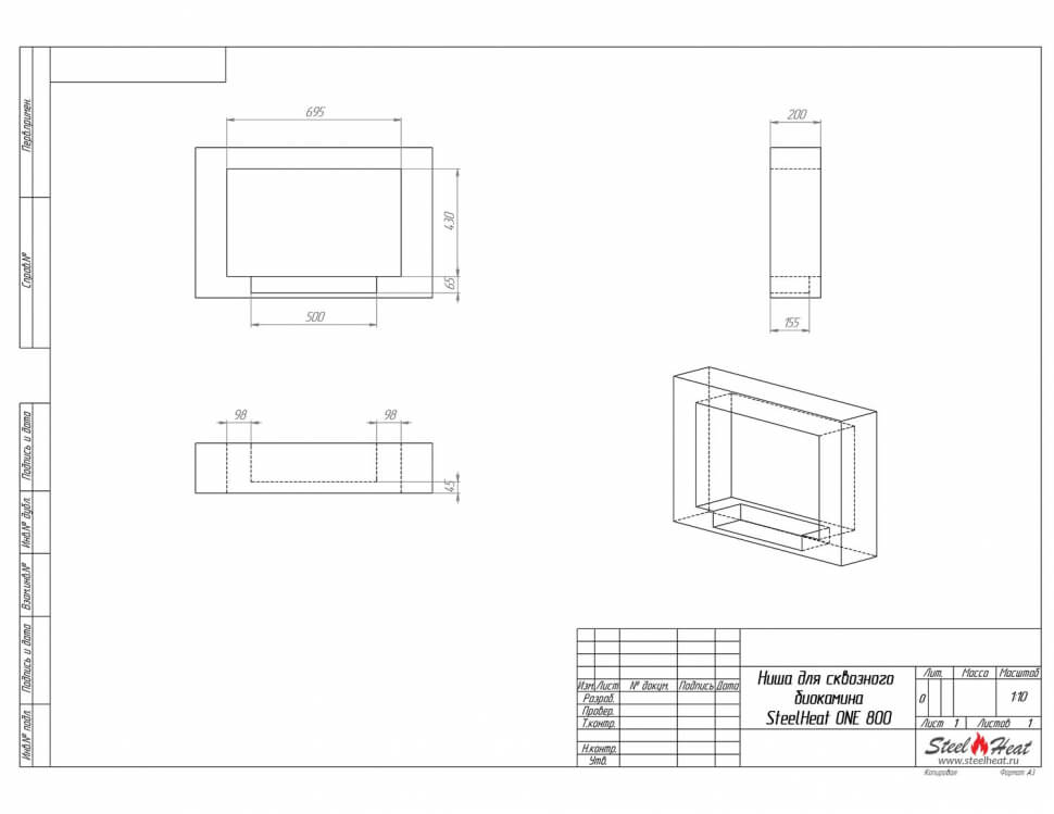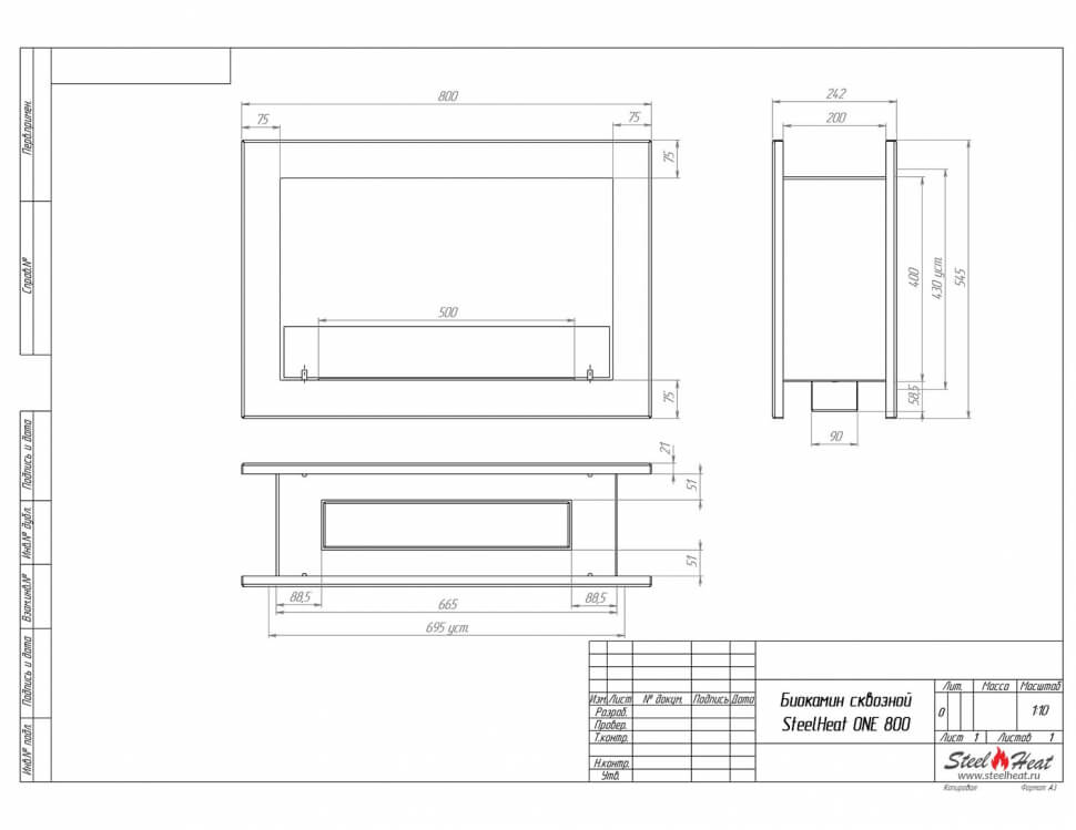 Биокамин сквозной SteelHeat One 800 (стандарт)