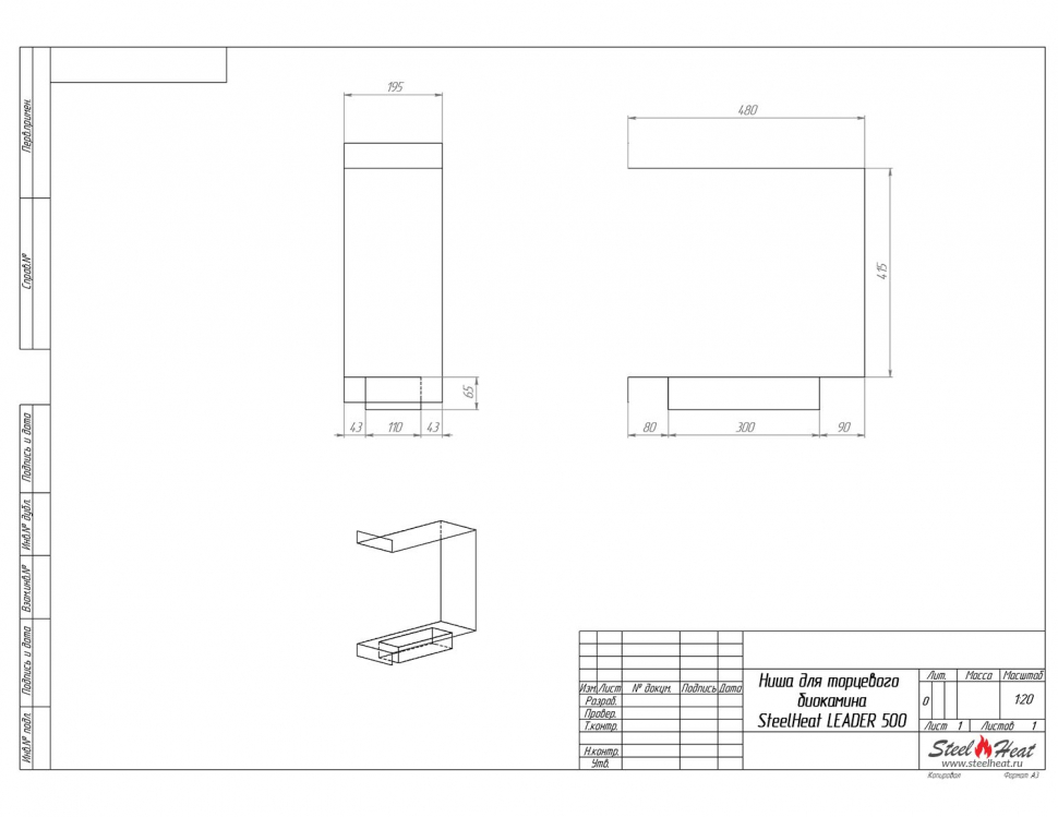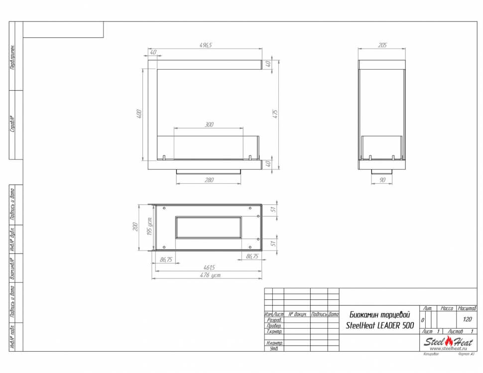 Инструкции, чертежи, документы - Биокамин торцевой SteelHeat Leader 500