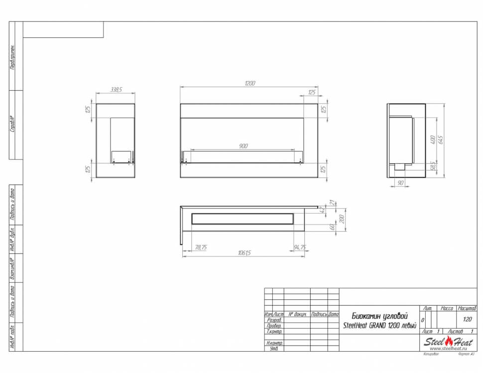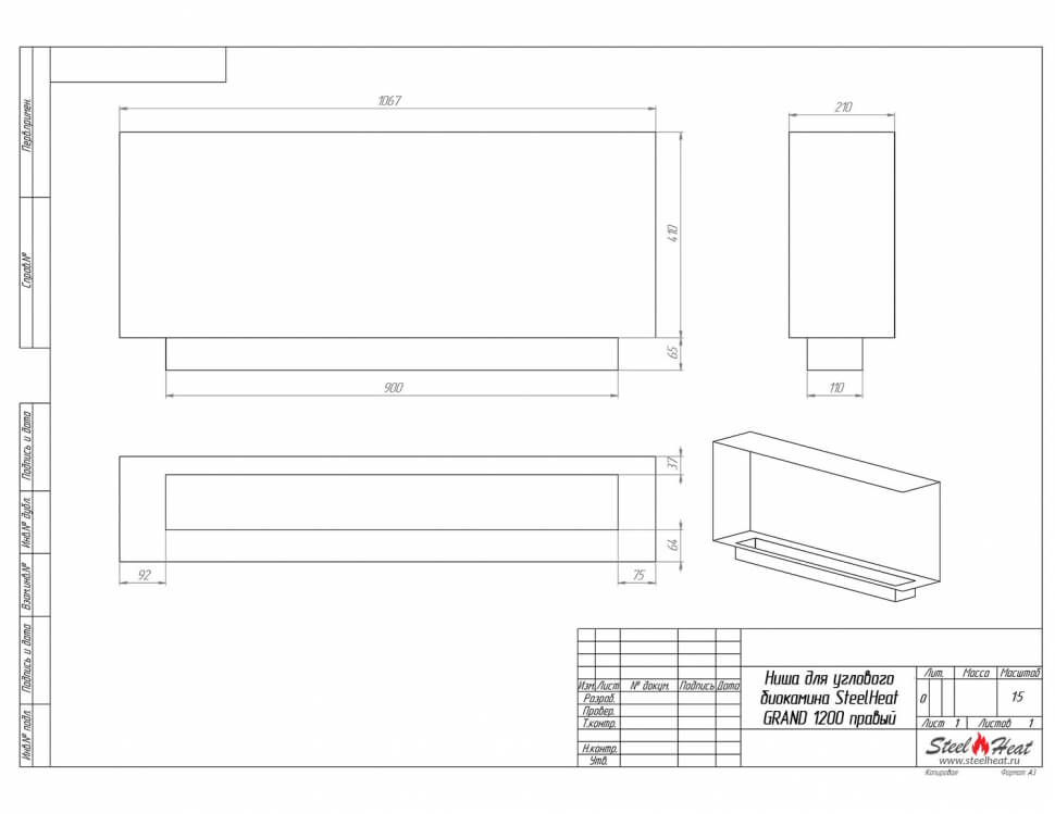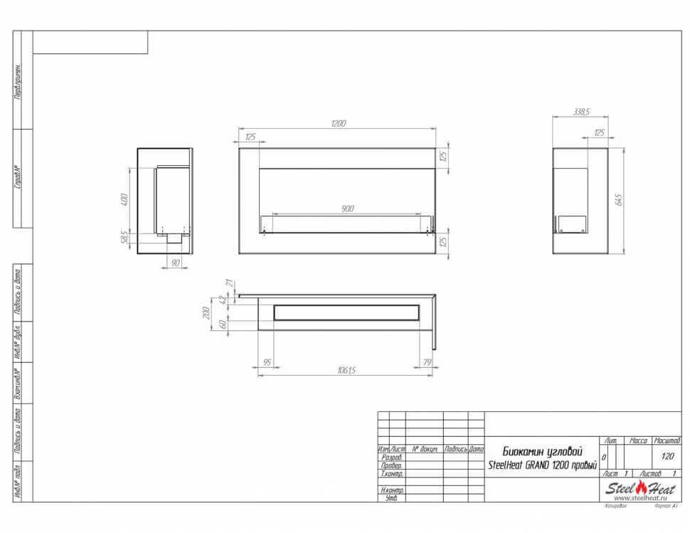 Инструкции, чертежи, документы - Биокамин угловой SteelHeat Grand 1200