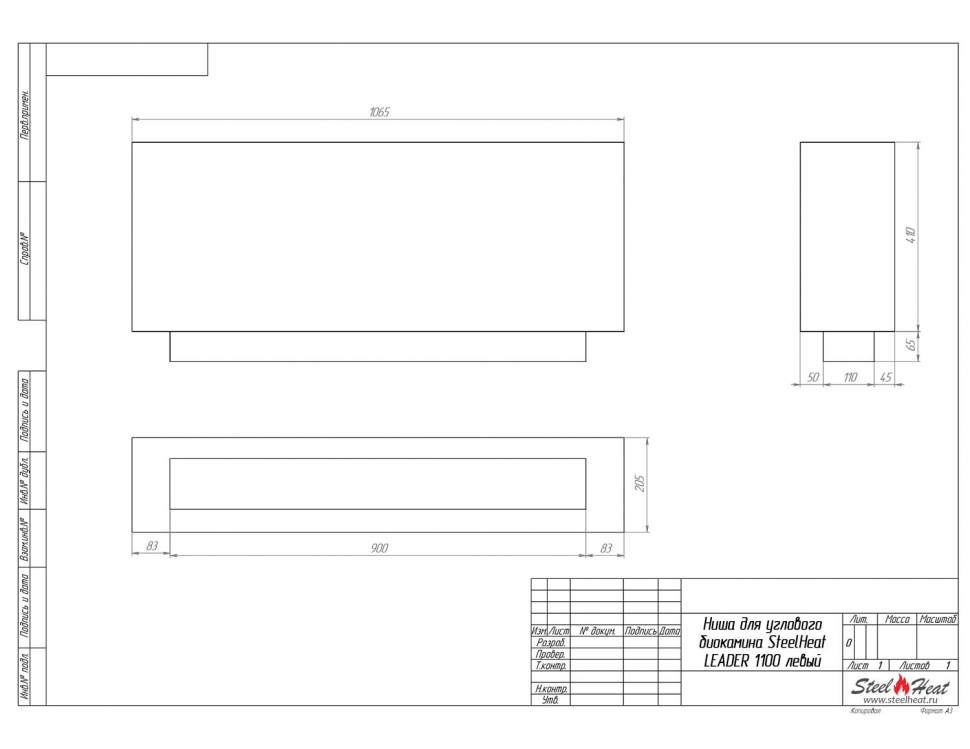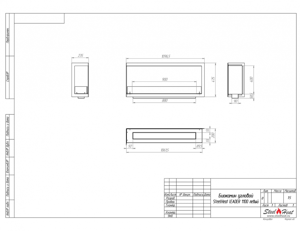 Инструкции, чертежи, документы - Биокамин угловой SteelHeat Leader 1100