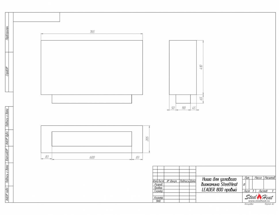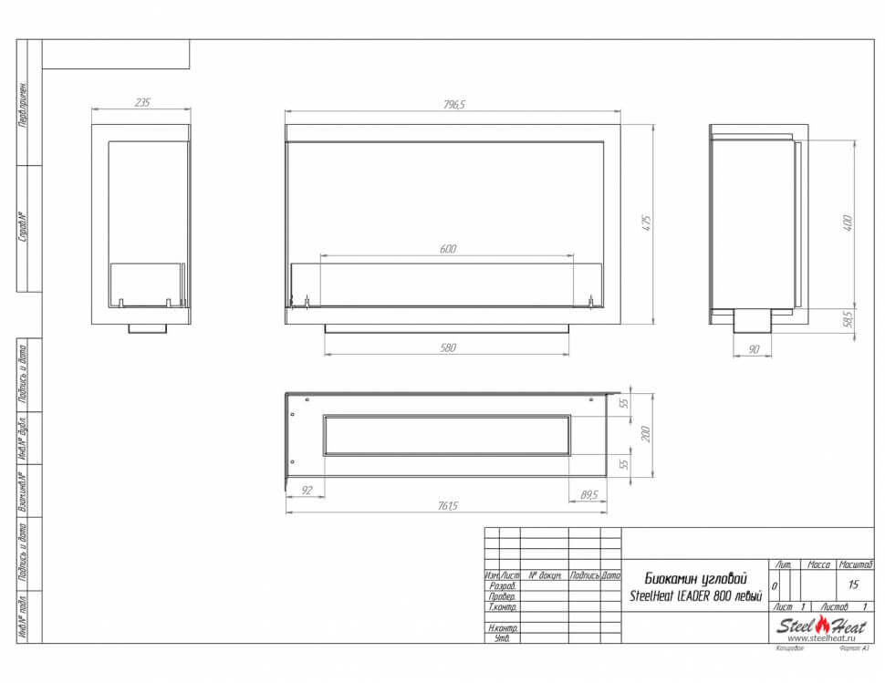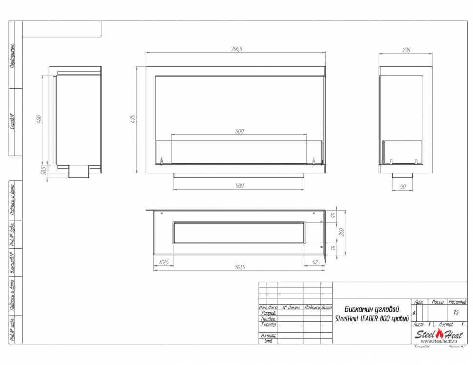 Инструкции, чертежи, документы - Биокамин угловой SteelHeat Leader 800