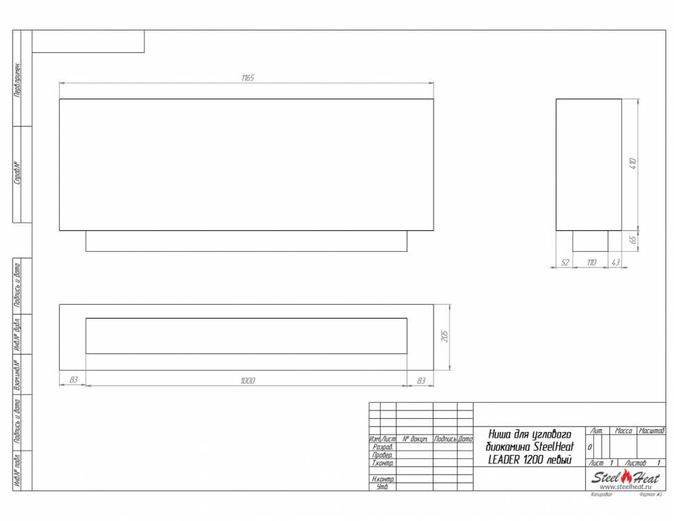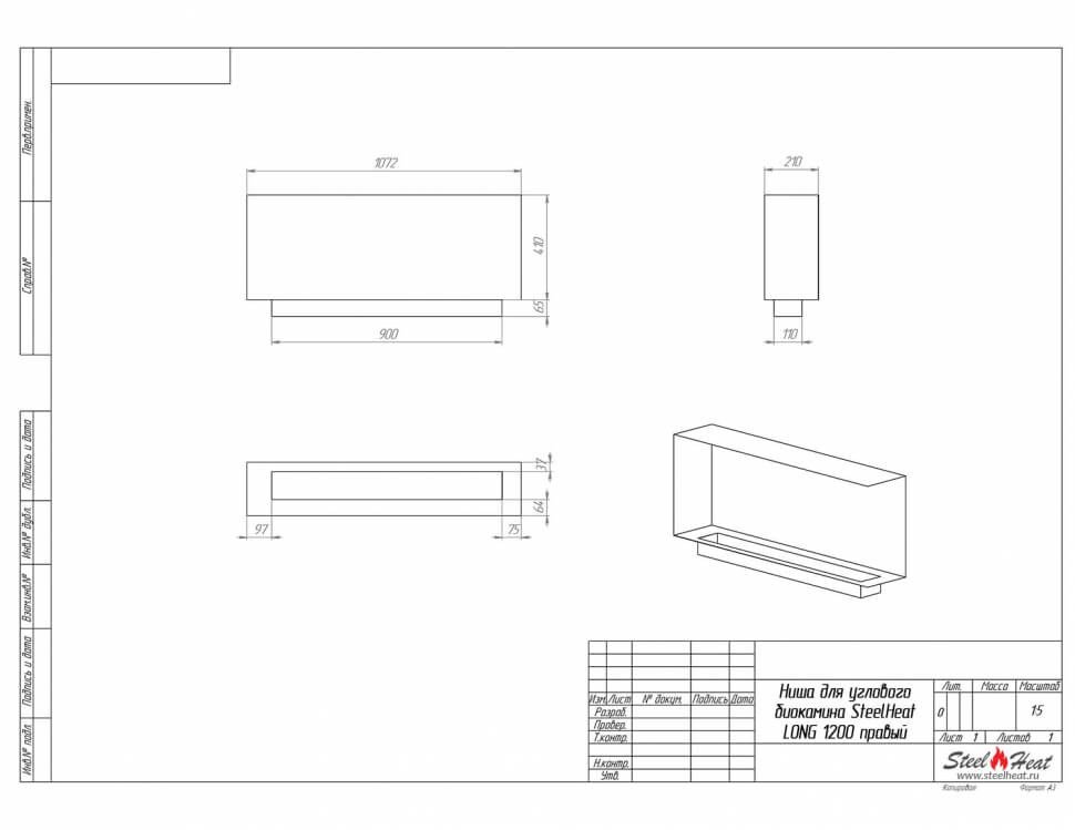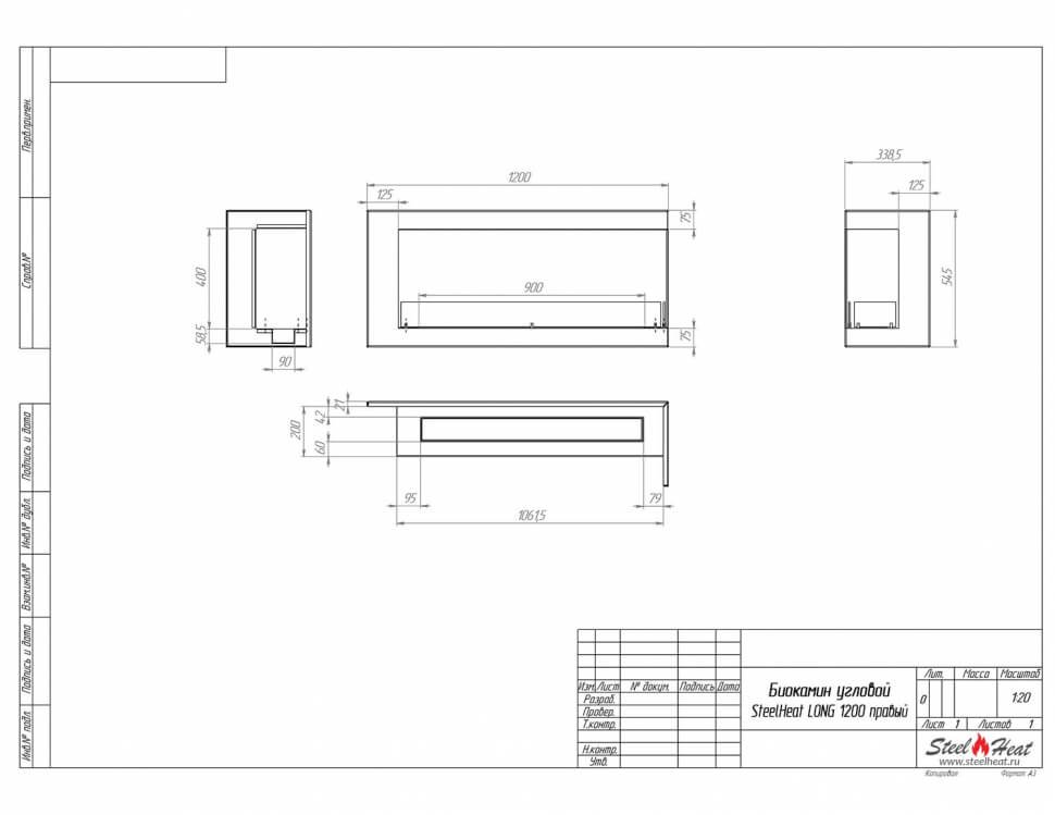 Инструкции, чертежи, документы - Биокамин угловой SteelHeat Long 1200
