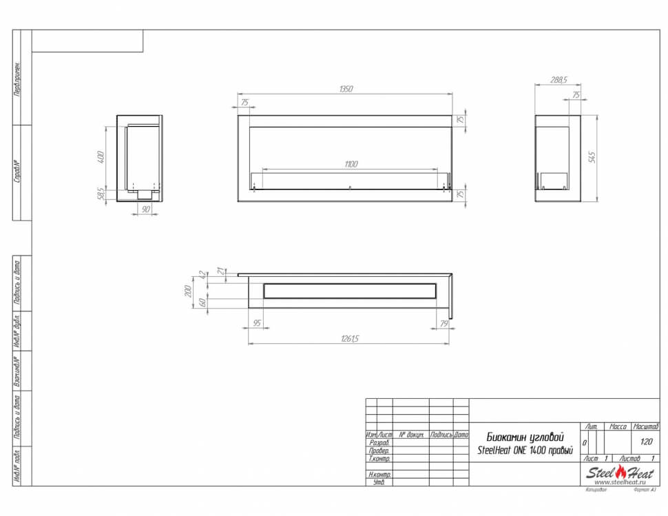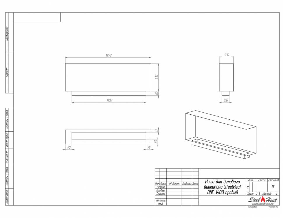 Биокамин угловой SteelHeat One 1400 (стандарт, левый)