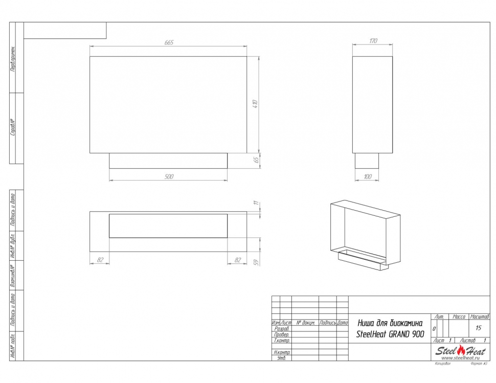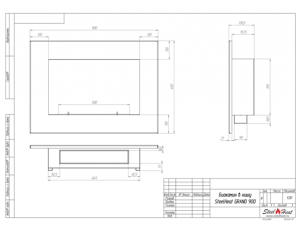 Инструкции, чертежи, документы - Биокамин в нишу SteelHeat Grand-H 900