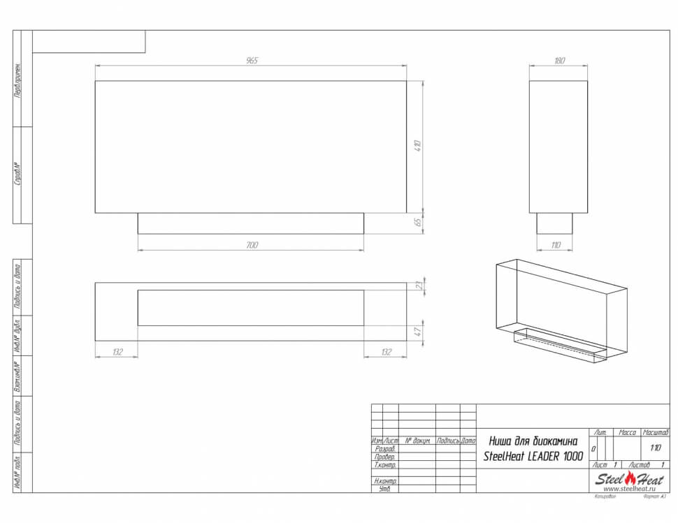Инструкции, чертежи, документы - Биокамин в нишу SteelHeat Leader 1000