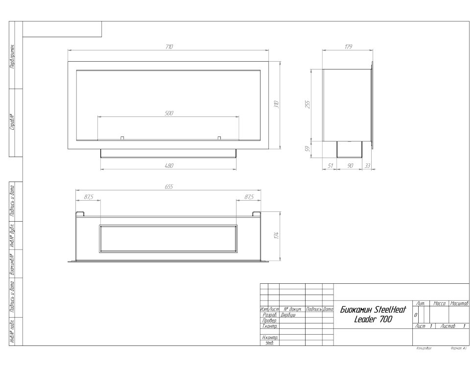 Инструкции, чертежи, документы - Биокамин в нишу SteelHeat Leader 700 Small