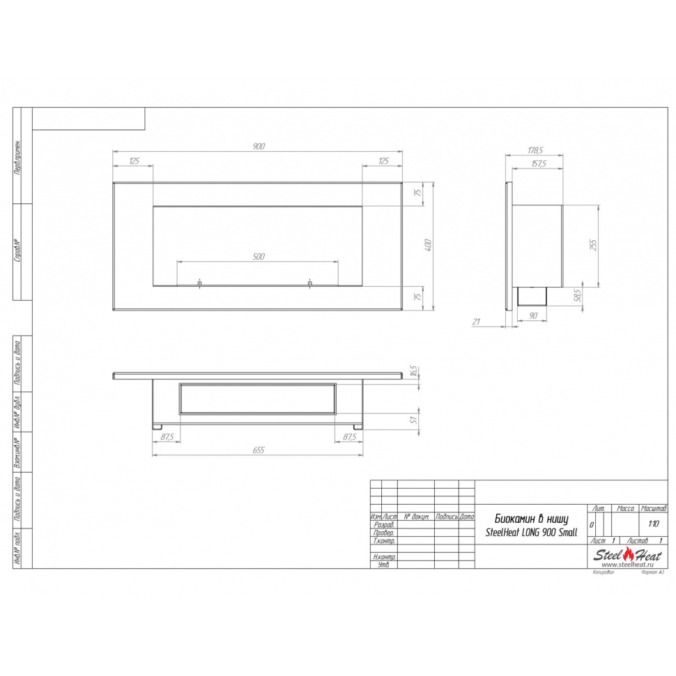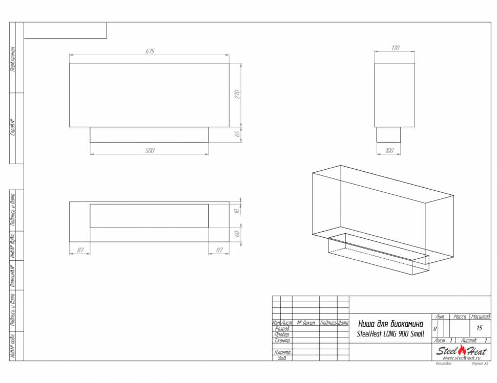 Биокамин в нишу SteelHeat Long 900 Small (стандарт)