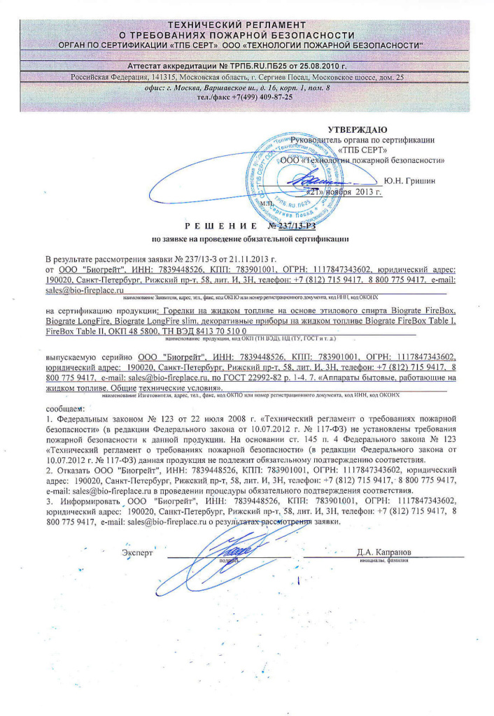 Инструкции, чертежи, документы - Механическая горелка Biograte LongFire 1000 для биокамина