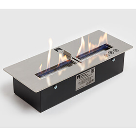 Особенность: Блок оснащен встроенным пламегасителем, позволяющим регулировать высоту пламени и удобную раскладку керамических дров. Имеет двойной корпус.