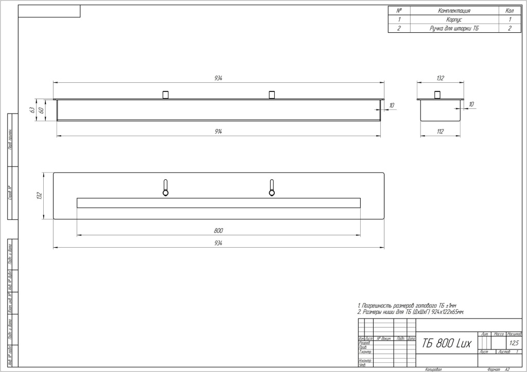 - Ширина, мм 934