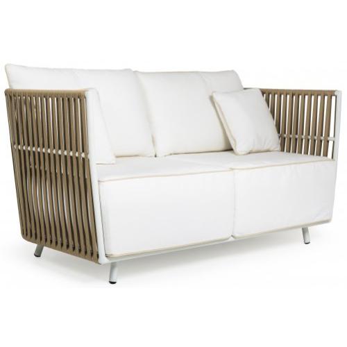Диван плетеный двухместный с подушками RosaDesign Gilda (белый,песочный)