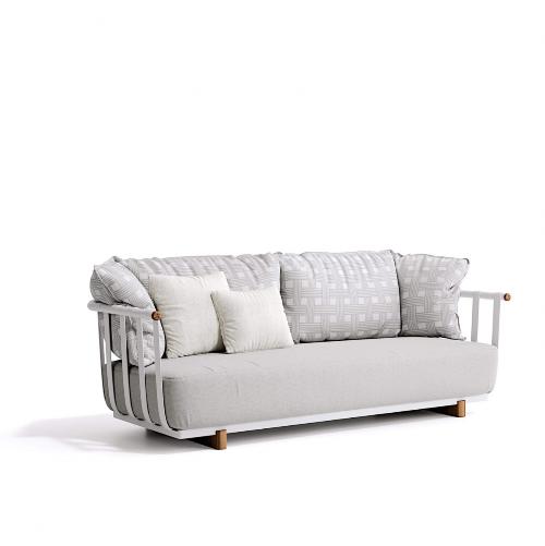 Portofino – это трехместный диван, который обладает художественной двойственностью. Такая черта выражается извилистыми и традиционными формами, контрастирующими с современной линейной структурой. Белый или графитовый алюминий в сочетании с деталями из натурального тика придают этому дивану уникальный и неподвластный времени характер. Он идеально подойдет для обстановки летних кафе, террас ресторанов, а также будет прекрасно смотреться в двориках частных домов.