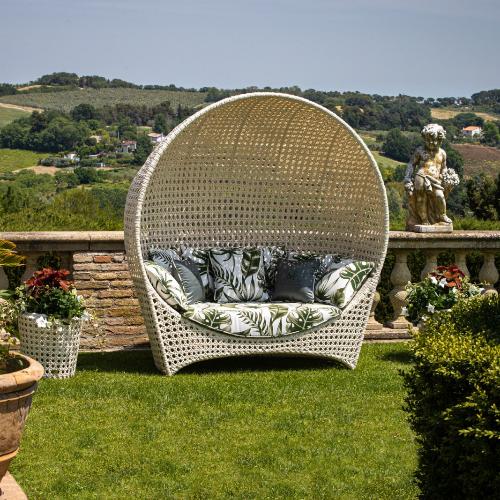 Плетеный диван Altair - уникальное и оригинальное произведение. Благодаря своей округлой структуре он напоминает концепцию ренессансного алькова. На открытом пространстве он дает уединение и комфорт, становясь настоящим гнездом, в котором можно уютно устроиться. Несмотря на свой размер, плетеный диван Altair предлагается в качестве легкого и гармоничного дополнения, которое со строгой элегантностью вписывается в пространство, что еще больше усиливает концепцию комфорта и расслабления на открытом воздухе.
