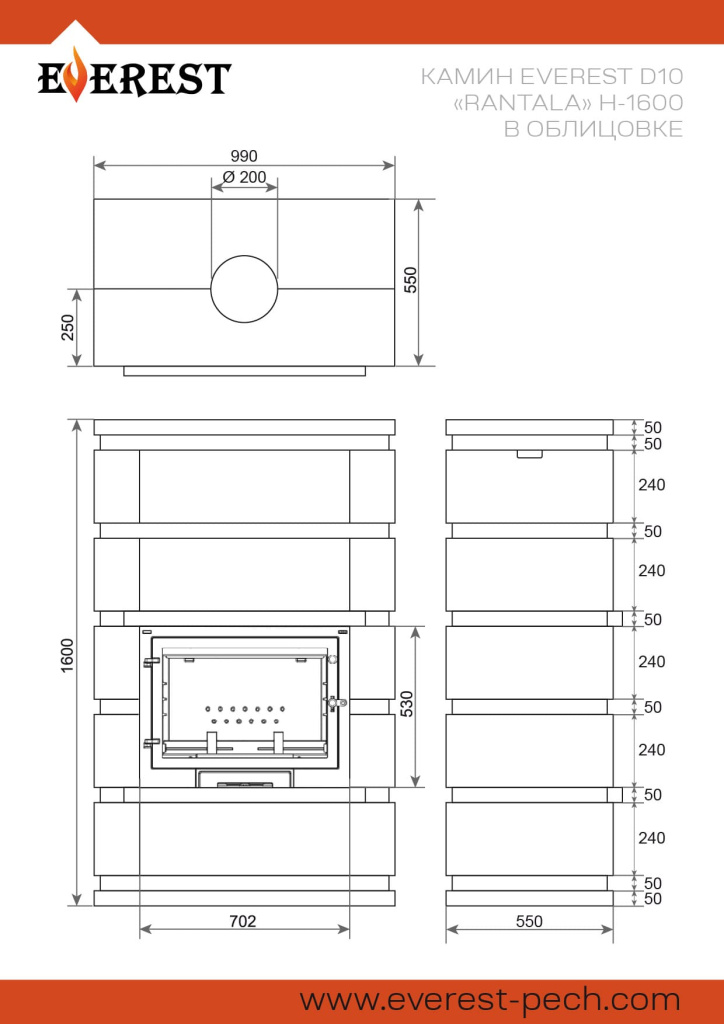 Инструкции, чертежи, документы - Камин Везувий Everest D10 Rantala Н-1530 Талькохлорит / Пироксенит