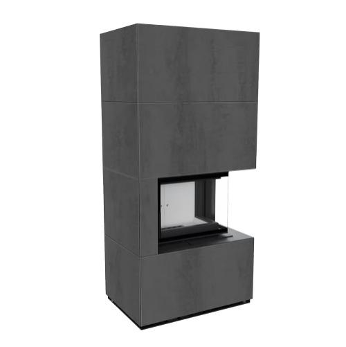 Каминокомплект Kratki Pro Floki в облицовке Naturali Pietra di Savoia Antrancite Bocciardata, угловое стекло справа (светлая футеровка)